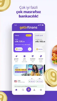 Sadece alışveriş ve yemekle sınırlı kalmayan Getir, hayatınızın diğer alanlarında da çözüm ortağınız. Ulaşım ihtiyacınız mı var? GetirBiTaksi ile şehrin her noktasına güvenle ulaşım sağlayabilirsiniz. Ayrıca, finansal işlemlerinizi tamamen dijital ve avantajlı hale getiren getirfinans ile tanışın. Yüksek faizli kredi imkanlarından, günlük kazandıran mevduatlara, avantajlı döviz ve altın kurlarına, kart aidatsız taksitlendirme seçeneklerine ve Getir harcamalarını ertelemenizi sağlayan getirsonraöde özelliğine kadar birçok yenilikçi hizmeti bir arada sunar. Üstelik 7/24 ücretsiz para transferi imkanıyla getirfinans, bankacılık deneyiminizi sadeleştirir ve kazançlı kılar. Getir, tek bir uygulama ile hayatınızdaki tüm dinamikleri yönetmenizi sağlar; alışverişten bütçenize, ulaşımdan keyifli anlarınıza kadar her zaman yanınızdadır.